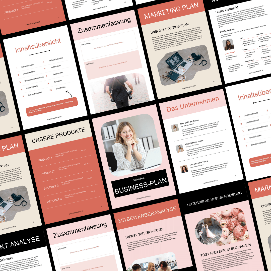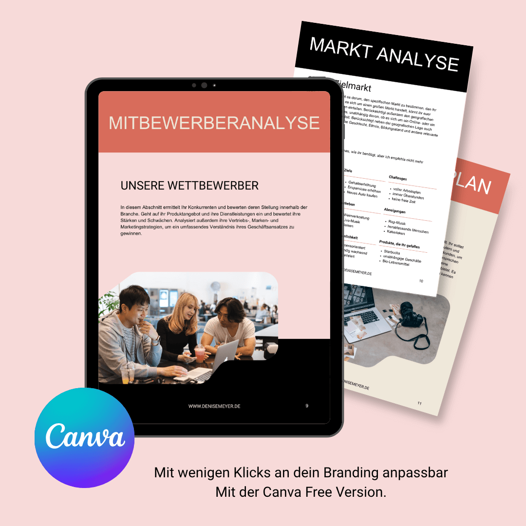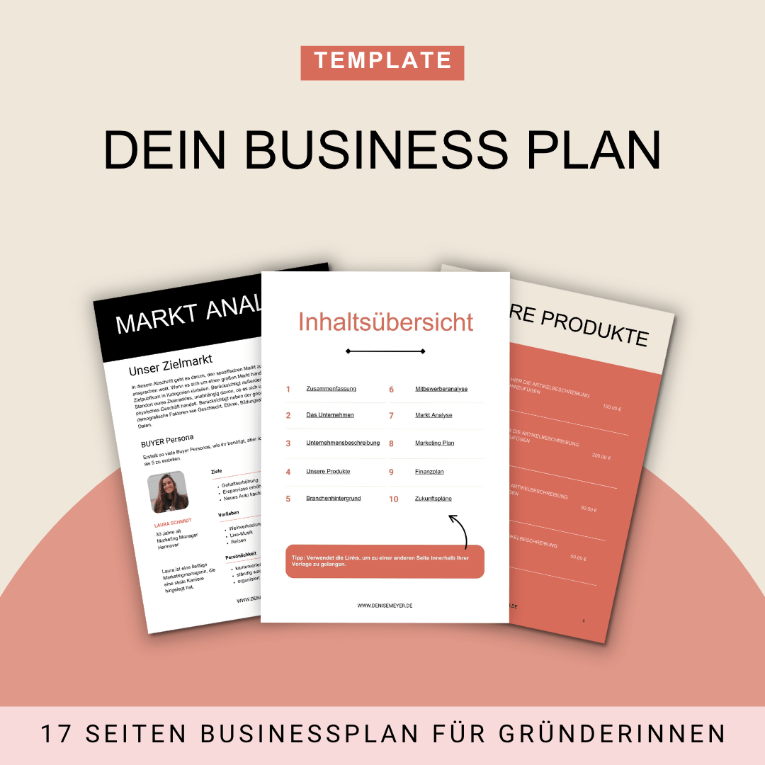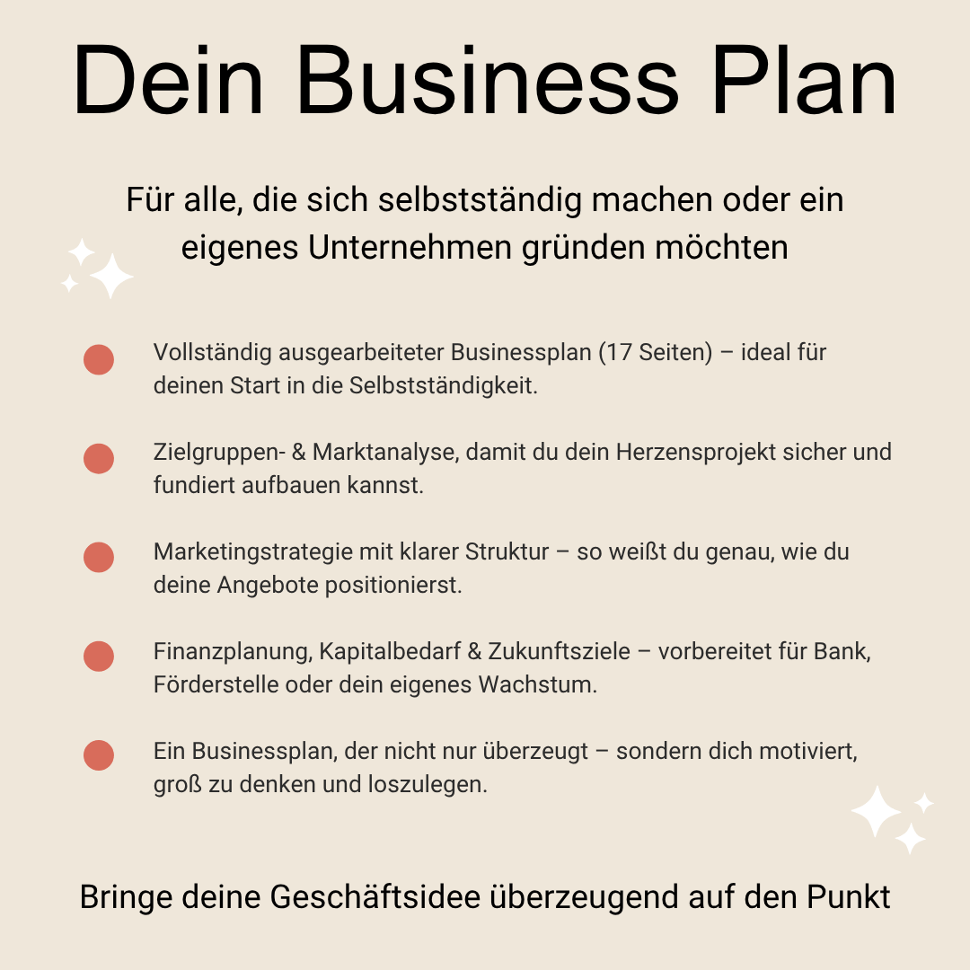 Ob du ein Café eröffnen möchtest, ein Coaching-Business startest oder digitale Produkte verkaufen willst – dieser Businessplan gibt dir eine professionelle Grundlage. Du kannst ihn direkt in Canva oder als PDF bearbeiten – ganz ohne Stress.
